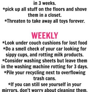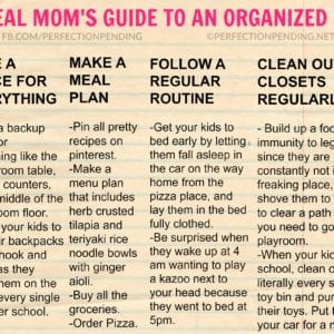 Do real moms really manage to clean baseboards and dust ceiling fans weekly? The answer is – come over to my clean house and see for yourself. Or no. The answer is no. Since I live in real reality (one with lots of humor), and not Pinterest reality, I decided to create a cleaning guide all […]
